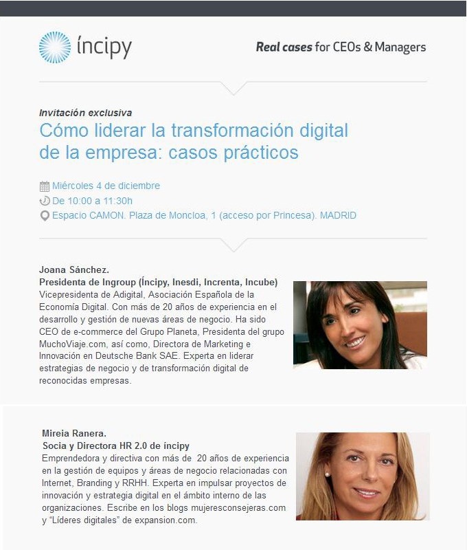 Creo profundamente en que sólo sobrevivirán las empresas que se adapten y se transformen digitalmente, situando a su cliente en el centro de su organización e identificando nuevas oportunidades de negocio. La velocidad de la tecnología y de la adaptación de las personas a las mismas se contrapone con la lentitud del cambio en las empresas y organizaciones que lideran los mercados actuales. La única pregunta, ahora, debe ser cómo crear una estrategia digital que nos permita usar las nuevas tecnologías mejor que la competencia.